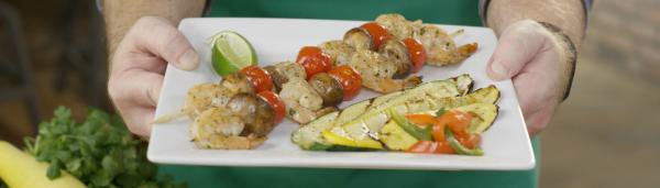 Shrimp is delicious no matter how it is prepared, but there is something so wonderful about shrimp grilled up on the barbeque! This cilantro and lime marinade is the perfect pairing for tender shrimp, tomatoes and mushrooms. Grill up your favorite veggies as a side, and this is a perfect, healthy meal!