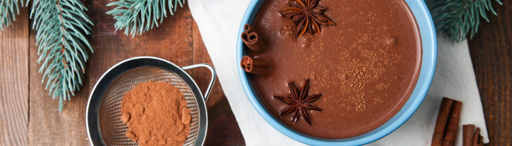Protein shakes, whether they are pre-made or powder, can be very versatile. We suggest turning your favorite chocolate protein shake into a delicious and festive hot cocoa drink. All you need to do is heat your favorite chocolate protein drink in a mug and then add your choice of festive flavor boosters such as:- Peppermint or Vanilla extract
