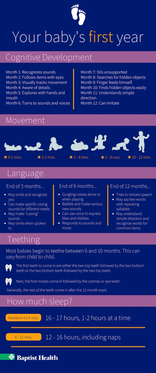 During the first year, you will get to experience so many firsts with your newborn. This Baptist Health ‘cheat sheet’ is a guideline for what you can expect to notice in the first 12 months.