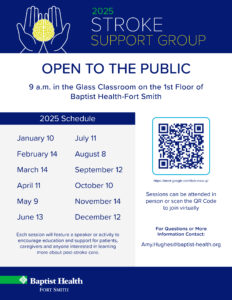 administer clot busting medication and is equipped to perform thrombectomies for large vessel occlusion strokes, ensuring rapid intervention when every second counts. Fort Smith achieved the Get With The Guidelines-Stroke Gold Plus with Target: Stroke Honor Roll Elite and Target: Type 2 Diabetes Honor Roll Achievement Award by the American Heart Association. From the ER, ICU, stroke unit, and neurology clinic we work seamlessly to provide a smooth transition from hospital care to follow up treatment, supporting patients throughout their recovery journey. Additionally we offer a monthly Stroke Support Group for survivors, family members, caregivers, hospital employees, and anyone interested in learning more about stroke recovery and care.